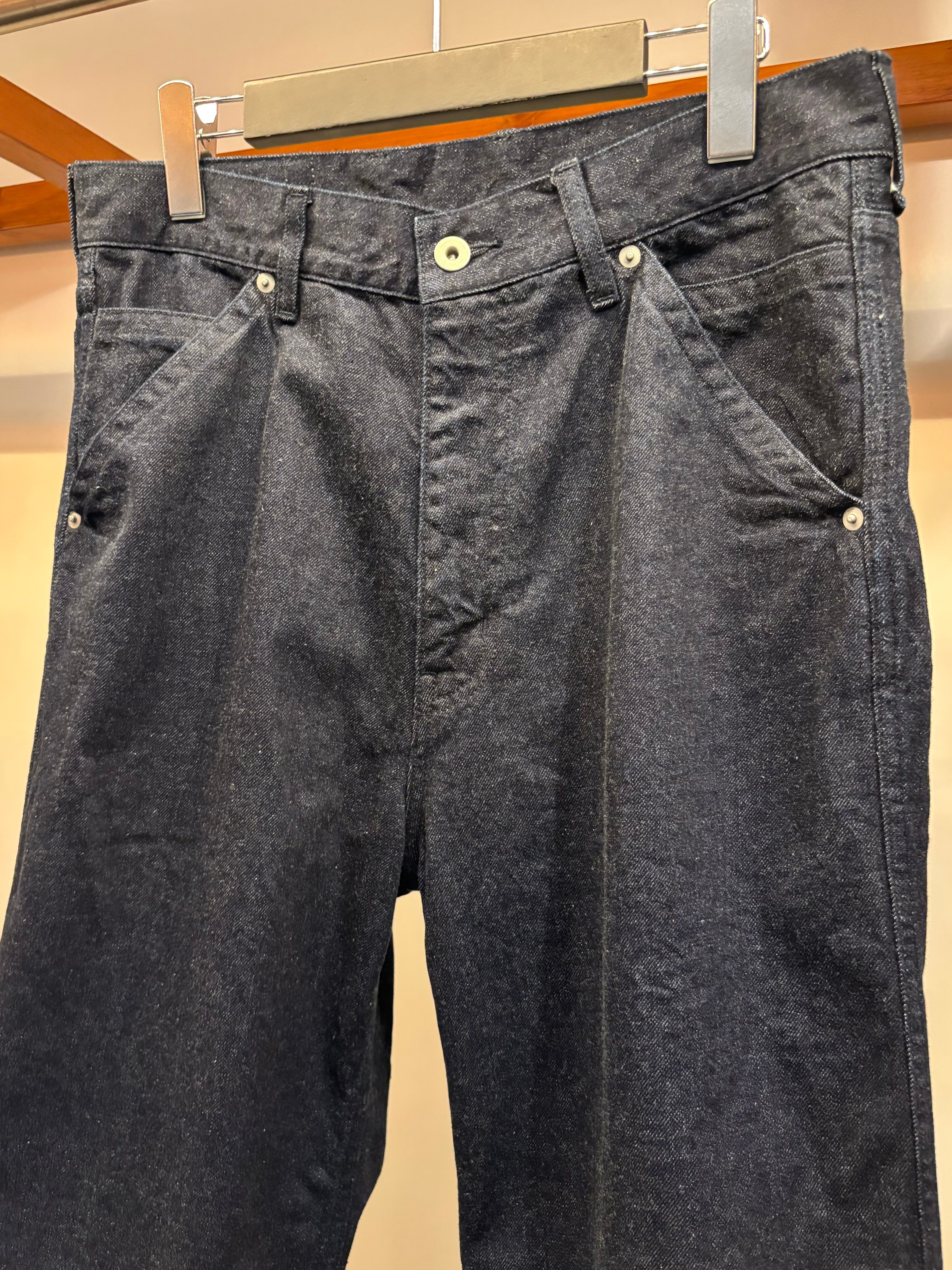 12ozの軽めのデニム生地にワンウォッシュ加工のみ施し、表面の風合いと本体のハリ感はキープ。