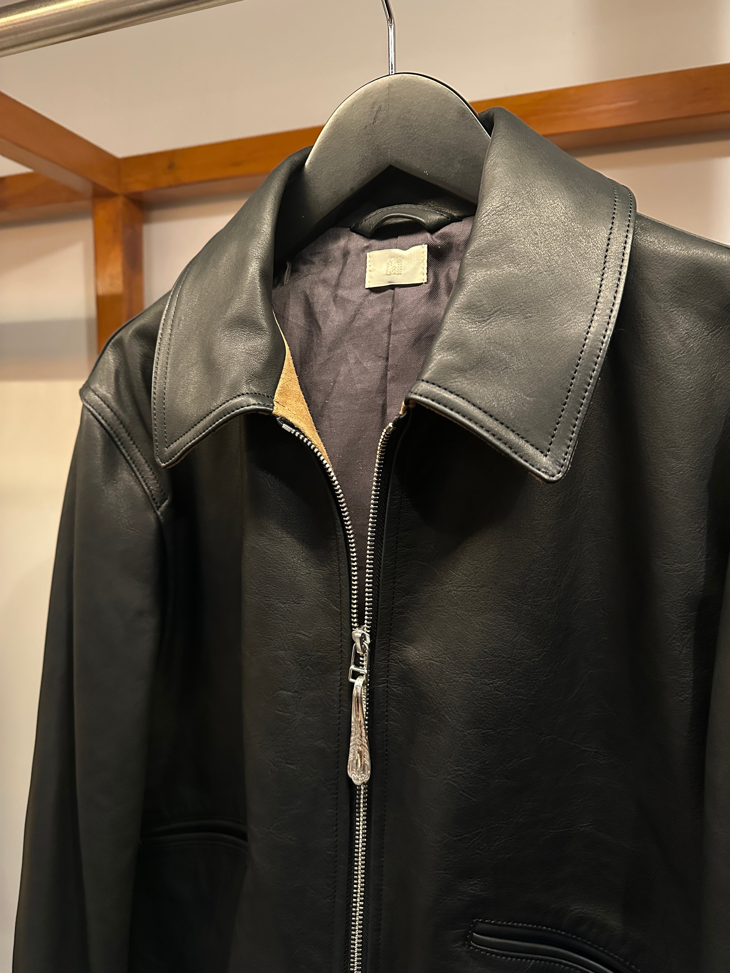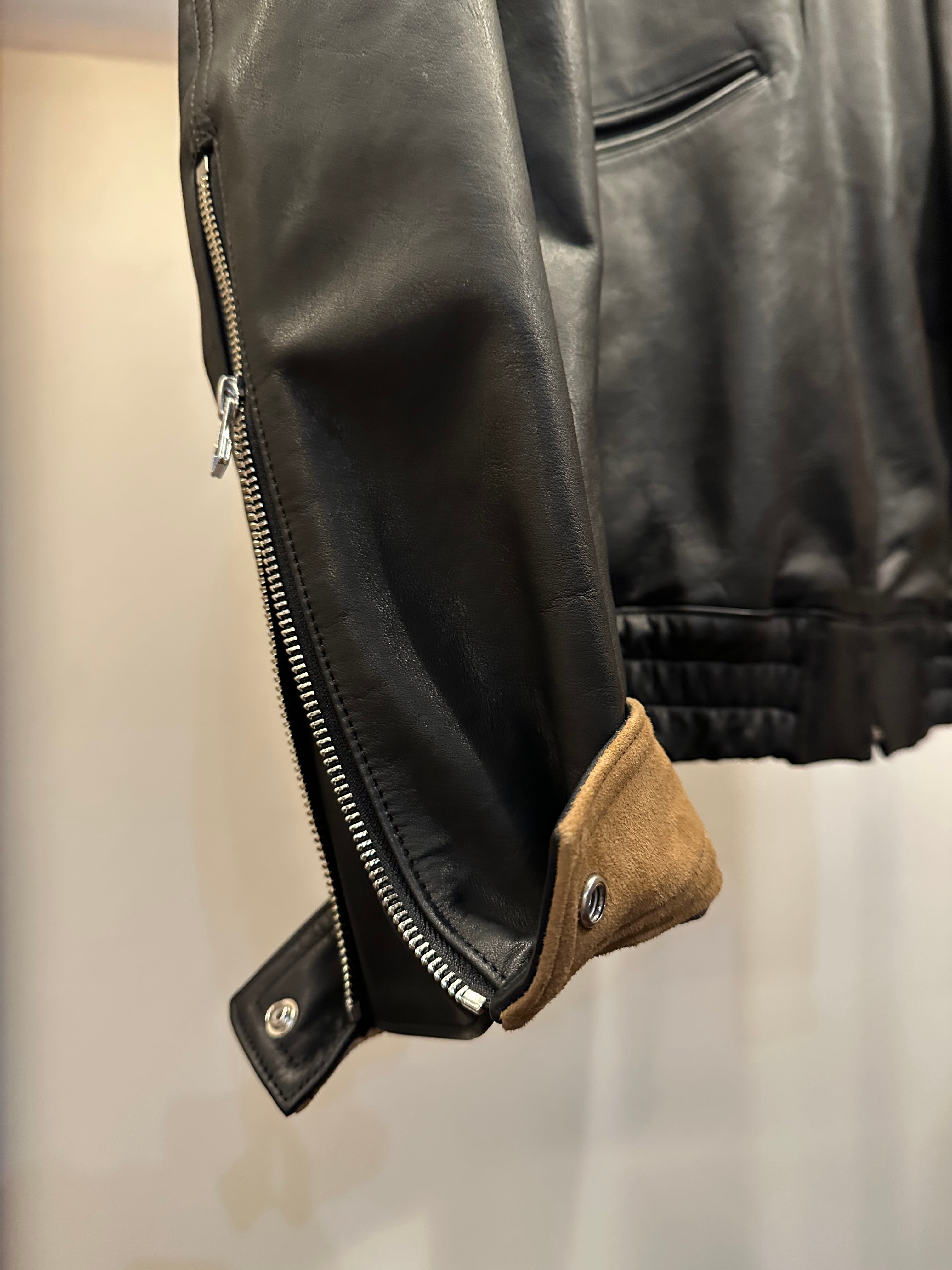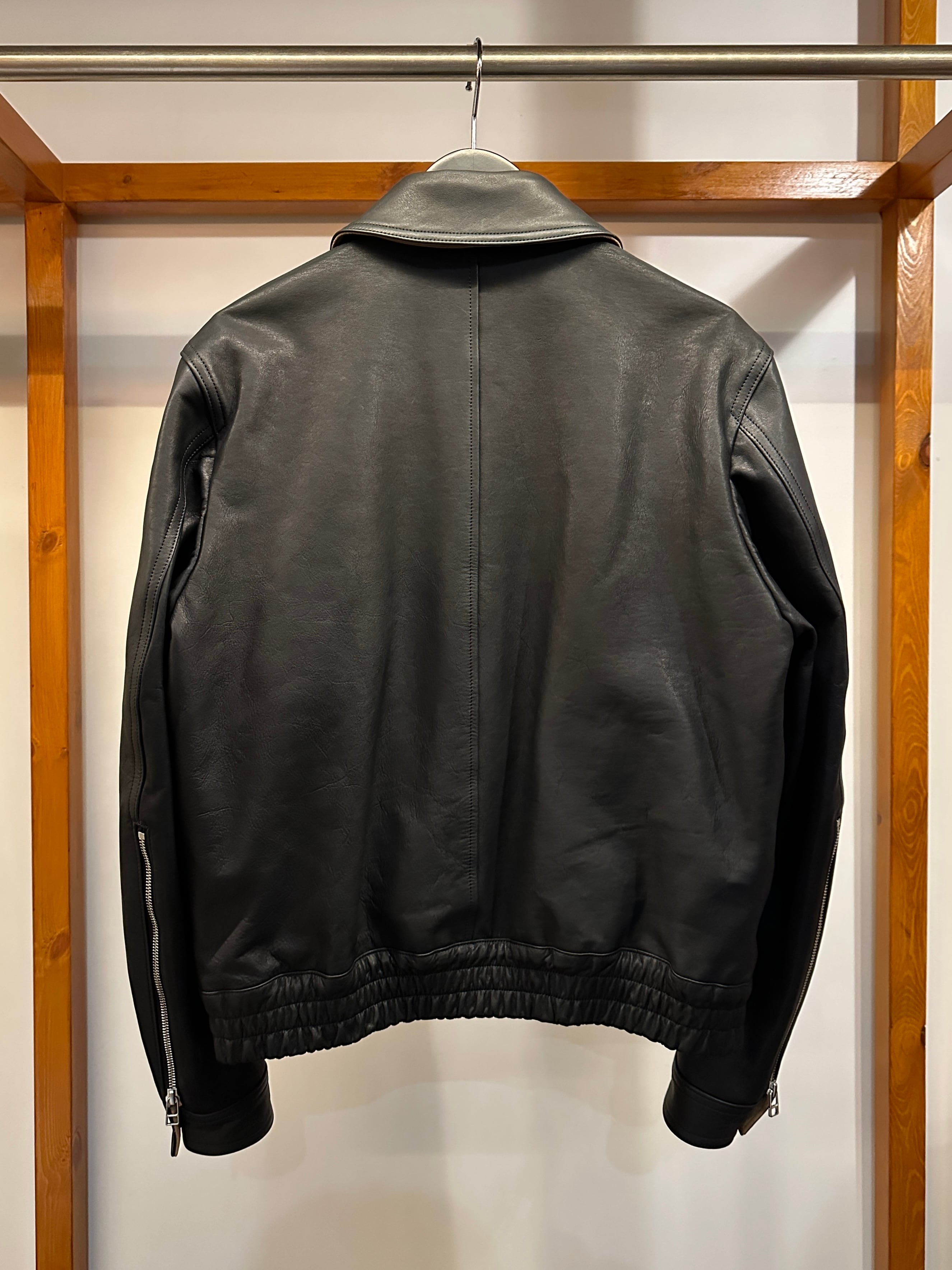 フライトジャケットA2モデルをベースにディティールを削ぎ落としたミニマルな仕様のレザージャケット。