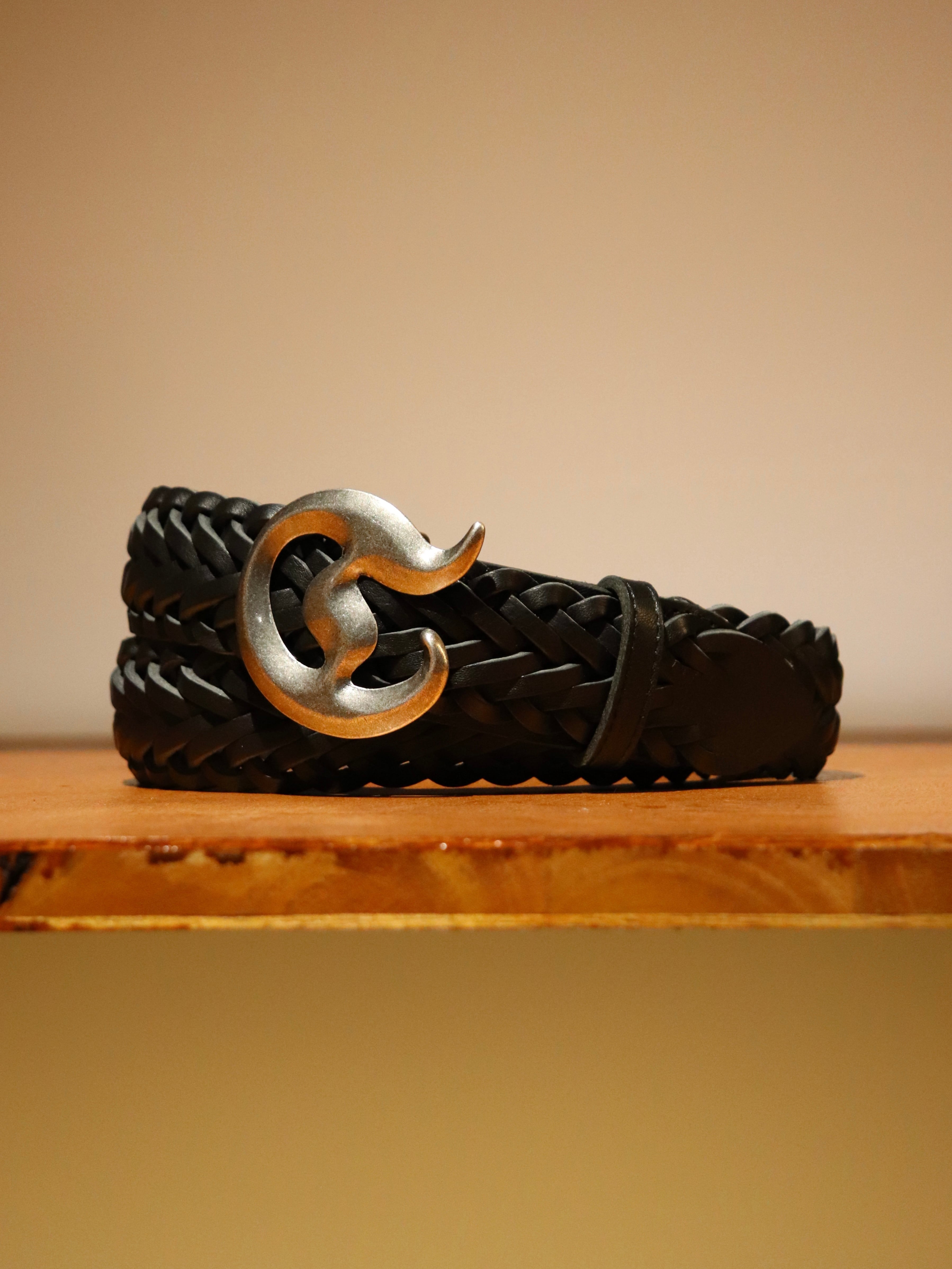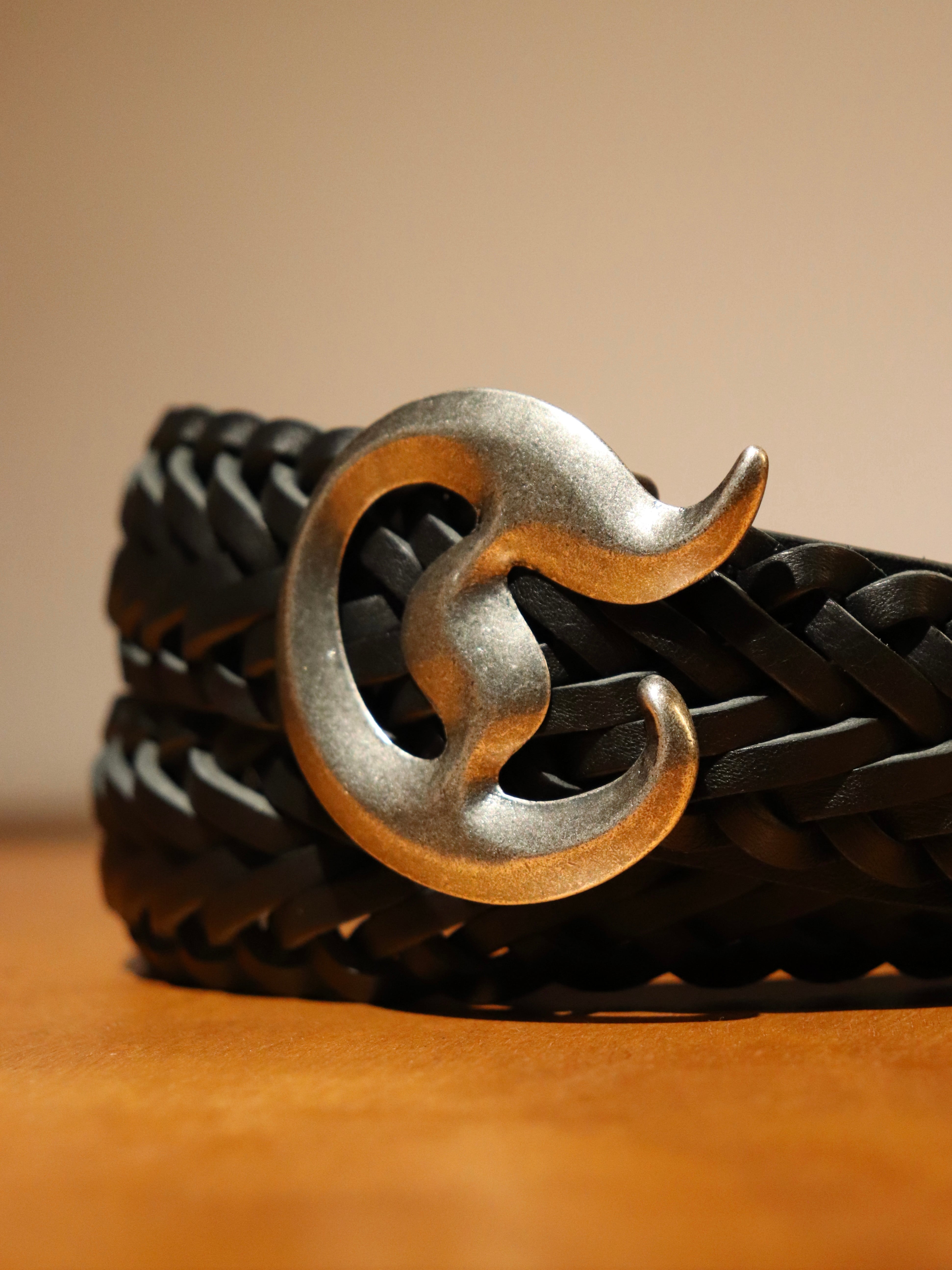 "D"Buckle Braided Leather Velt