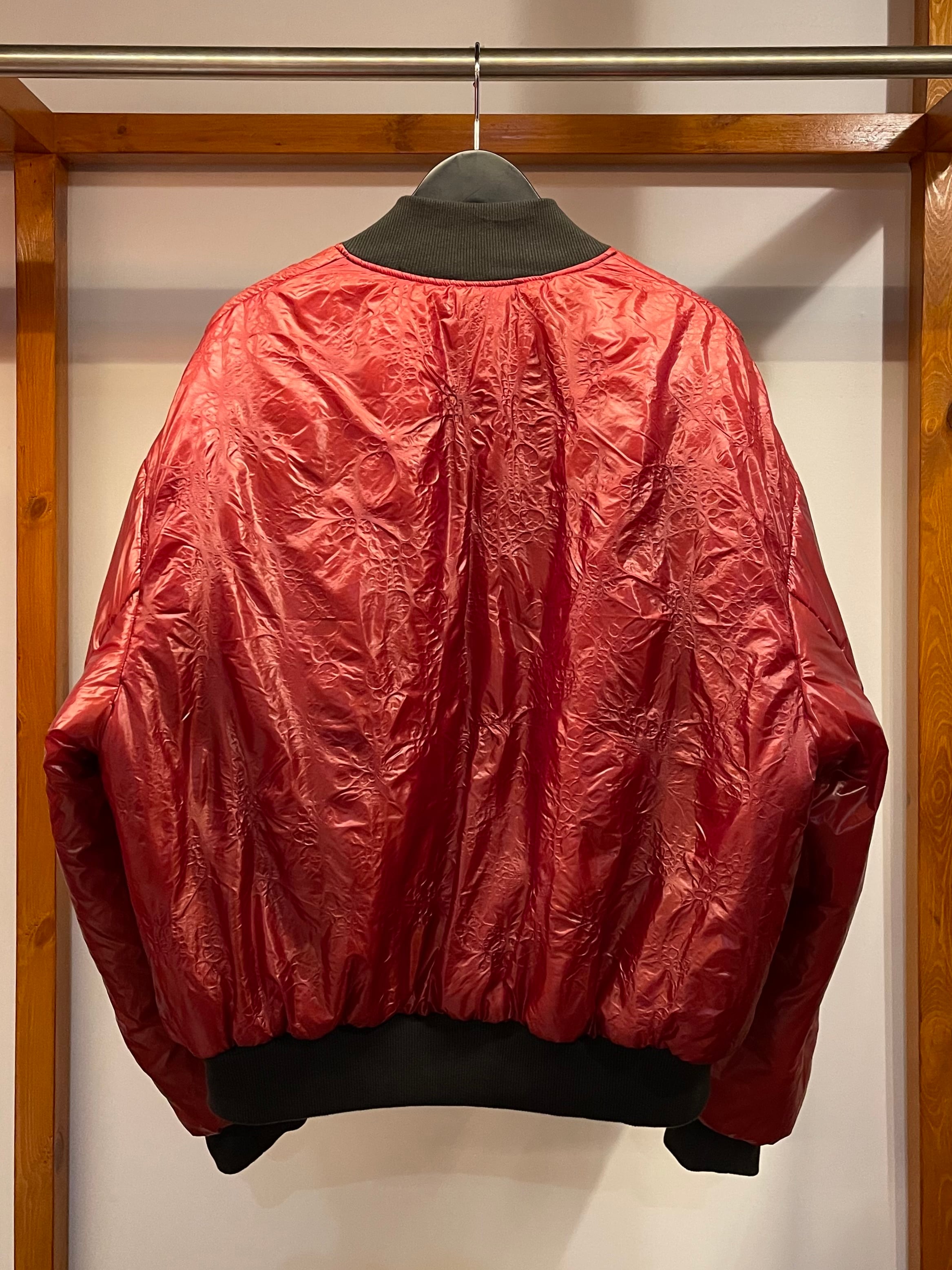 表面はミニマルな表情を反映し、120g/mの綿を採用したビッグシルエットのボンバージャケット。