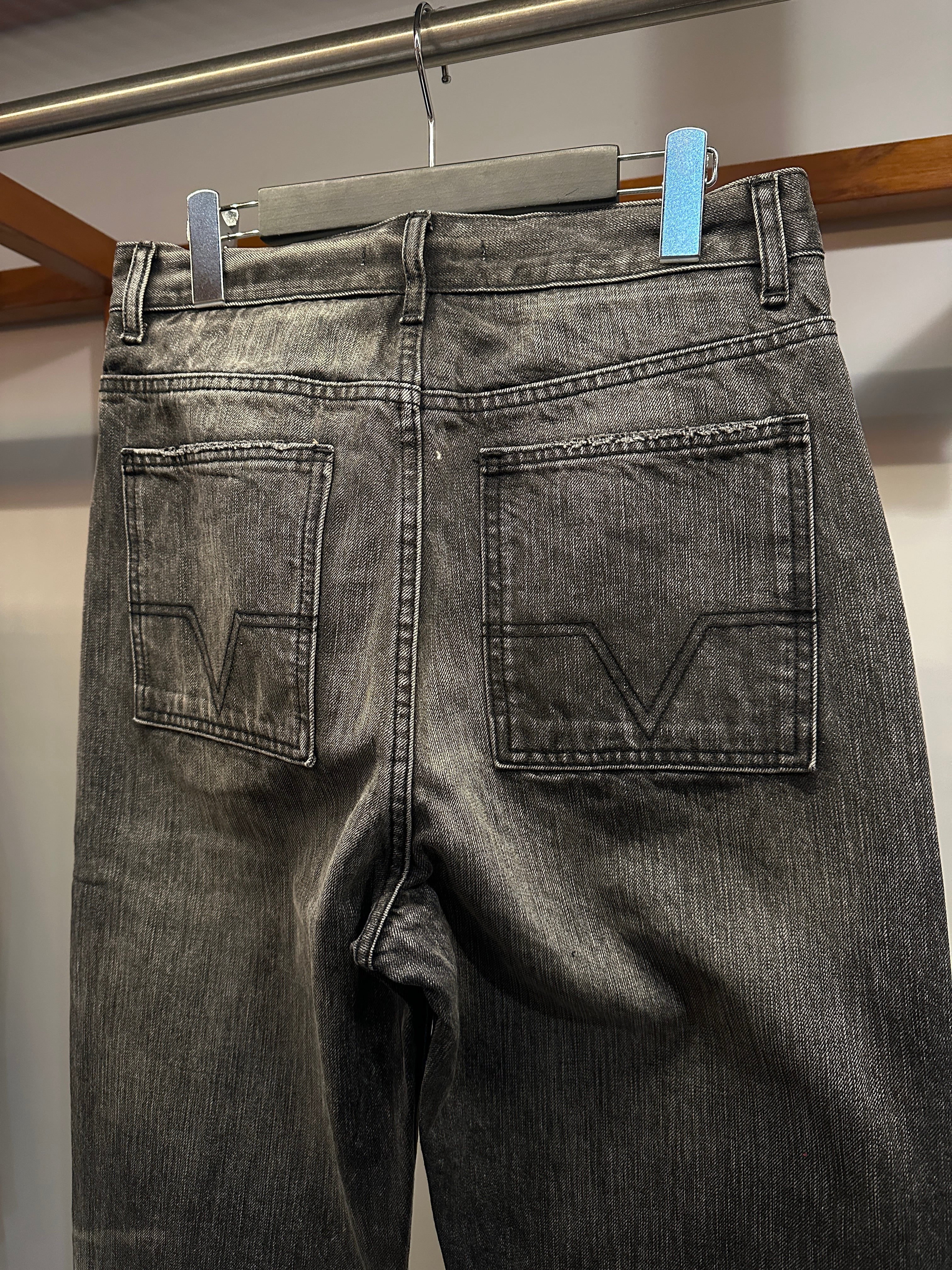 クラシックな5ポケットデザイン・ボタンフライに加え、バックポケットにはシグネチャーの幾何学模様のステッチが施されています。