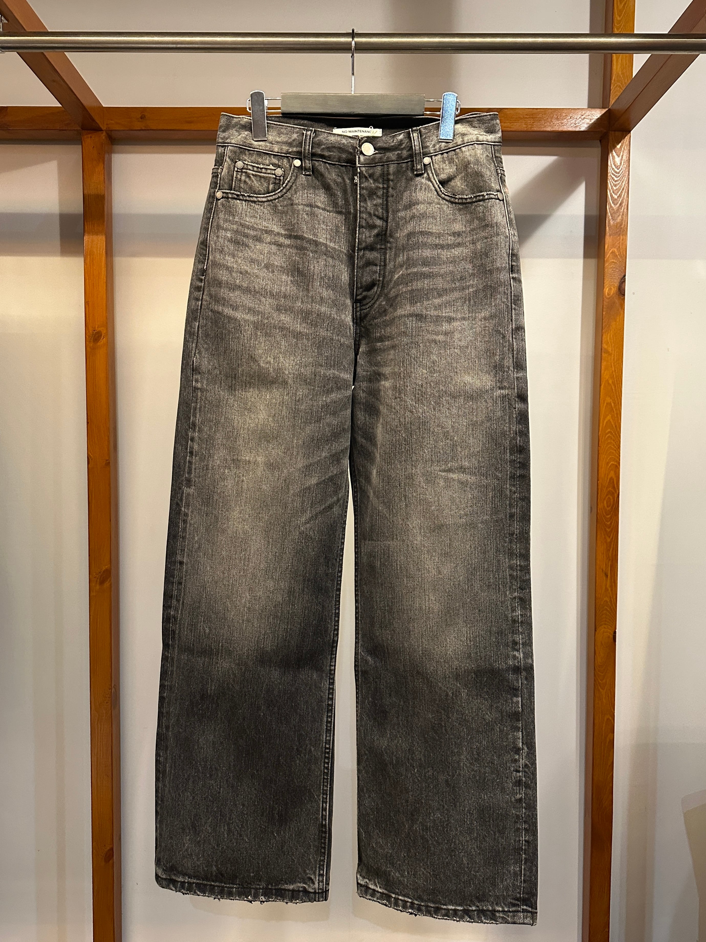 14ozの日本製セルビッジデニムを使用し、深みのあるチャコールブラックに仕上げた定番のバギーデニム。