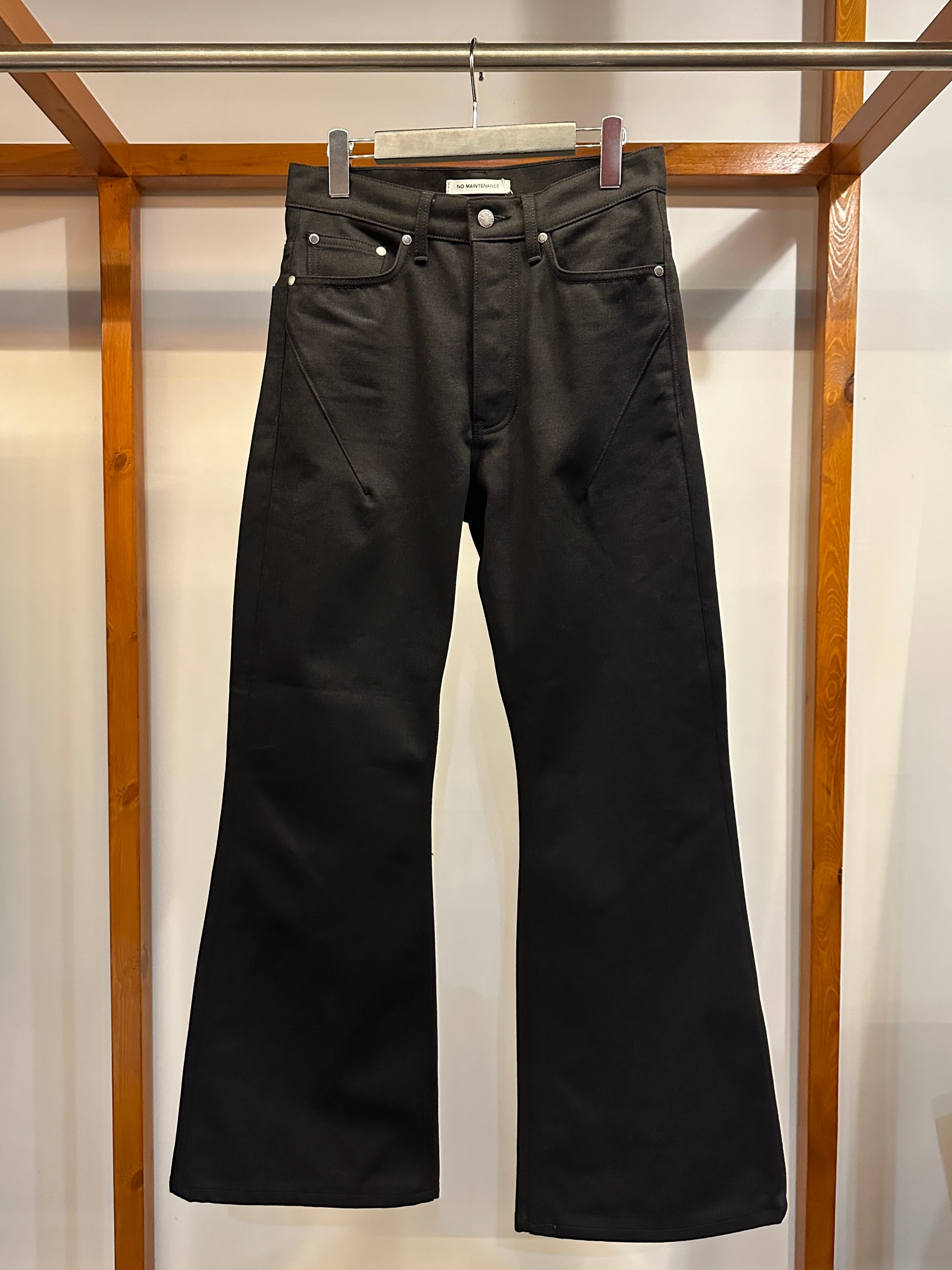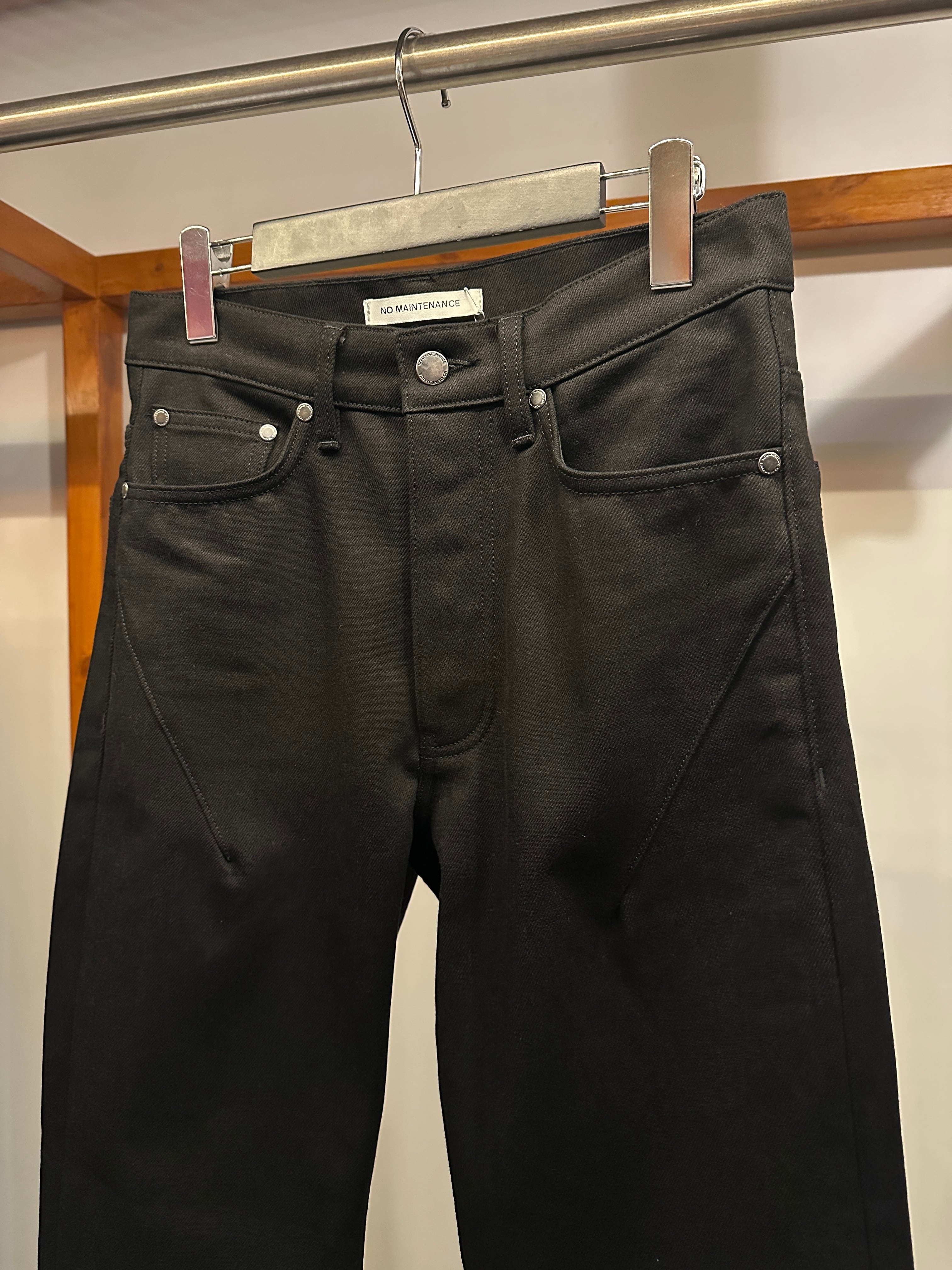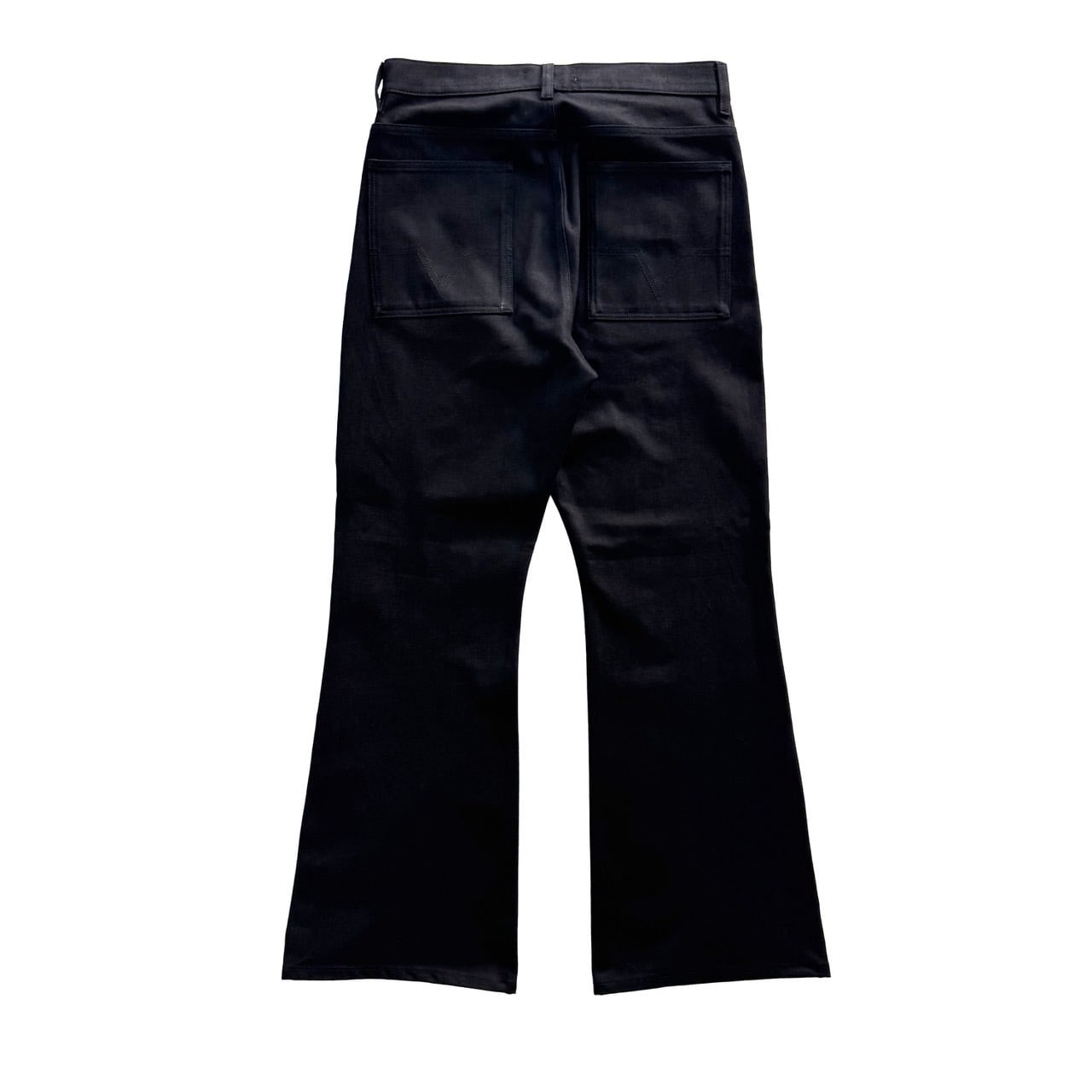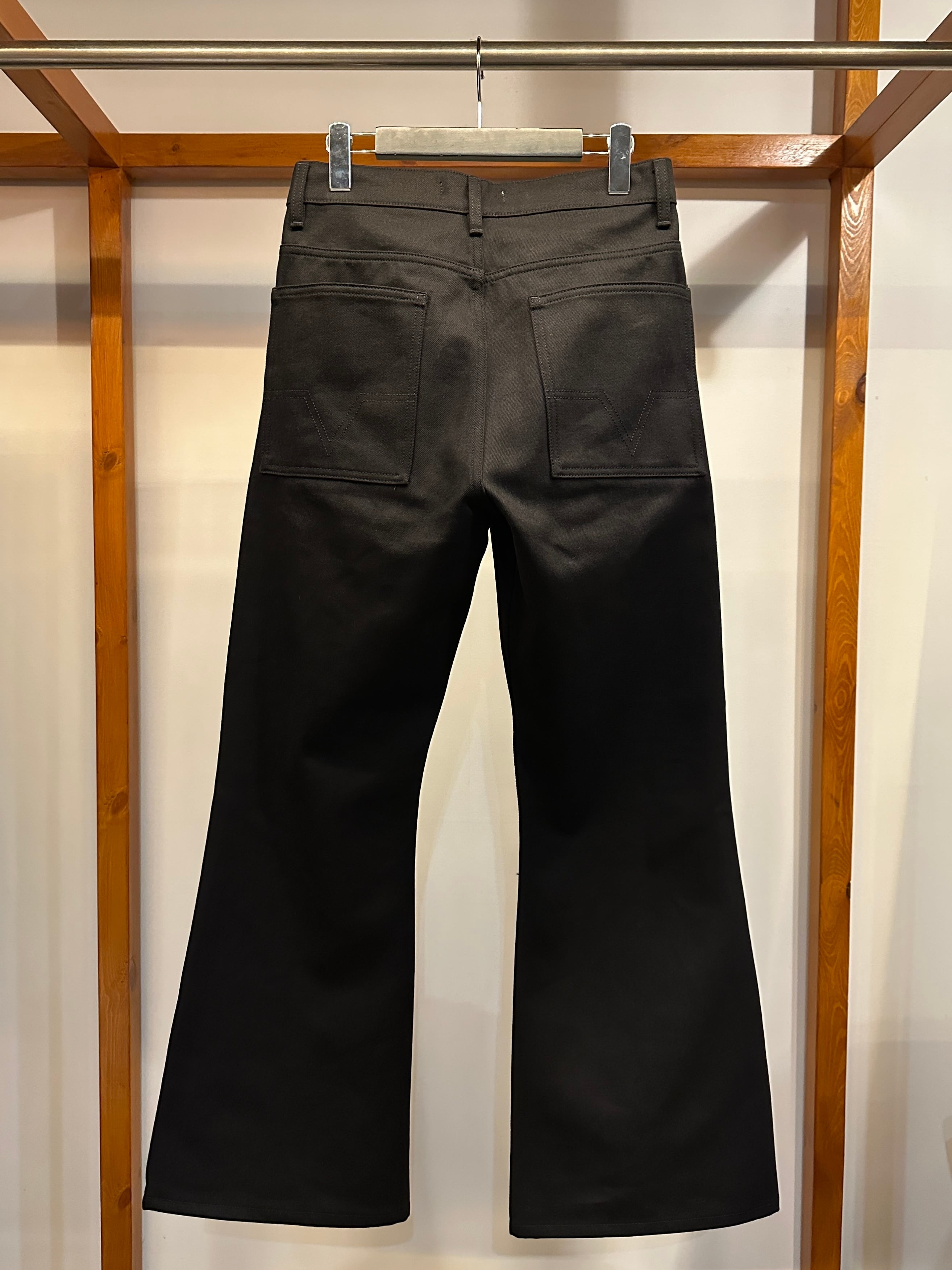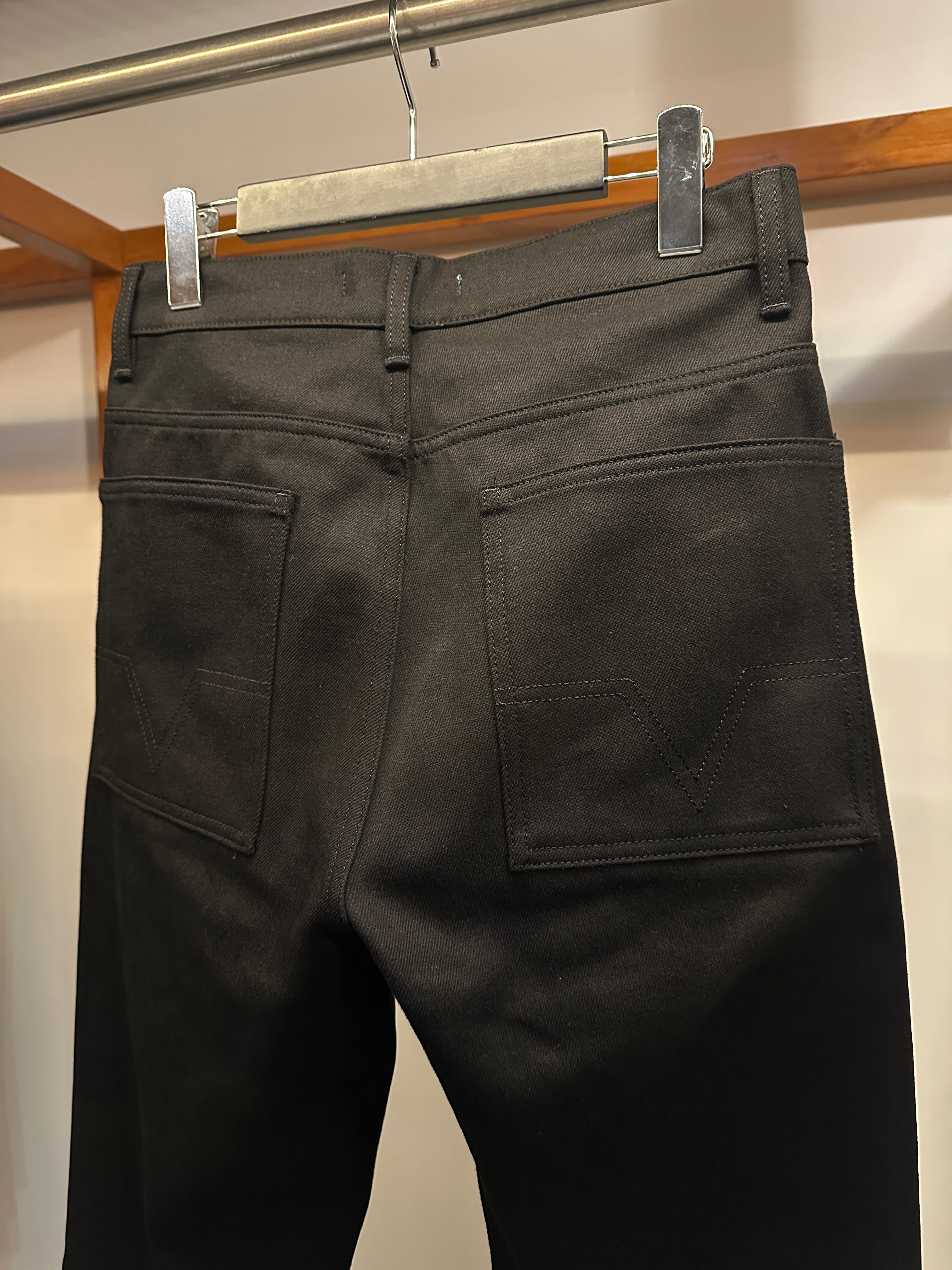 クラシックな5ポケットデザイン・ボタンフライに加え、バックポケットにはシグネチャーの幾何学模様のステッチが施されています。