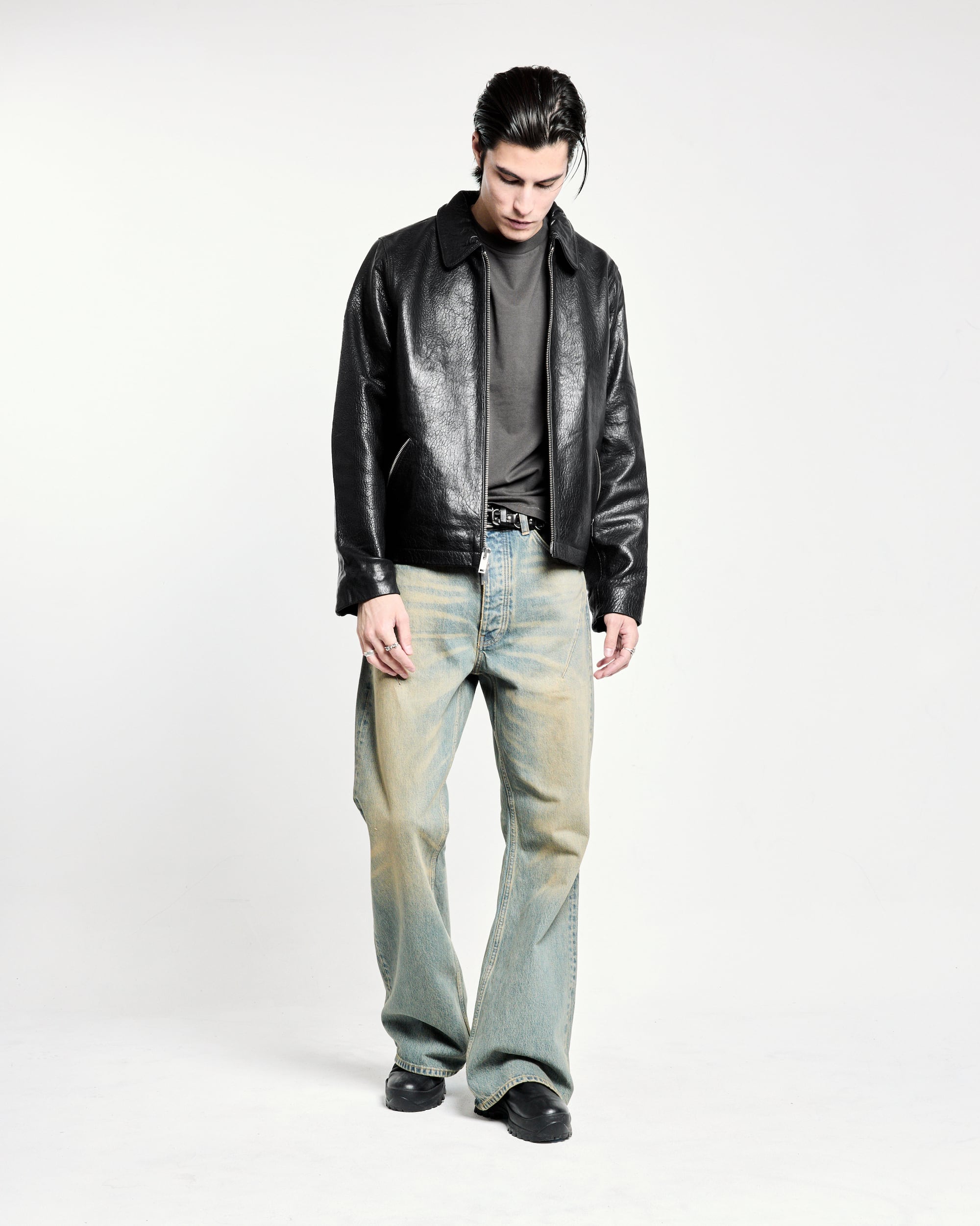 14ozのオーガニックコットンデニムを使用したフレアカットのドリフターデニム。