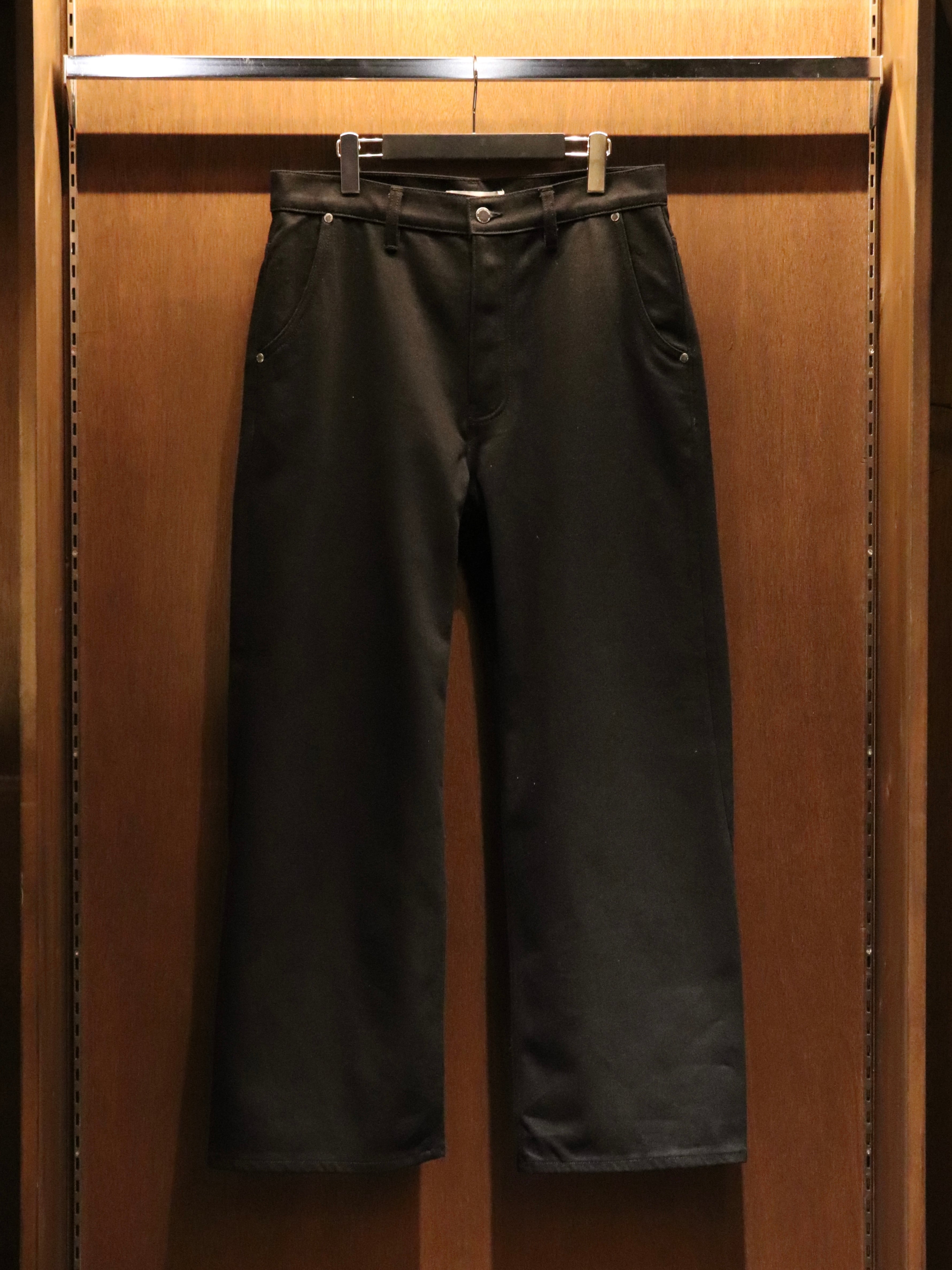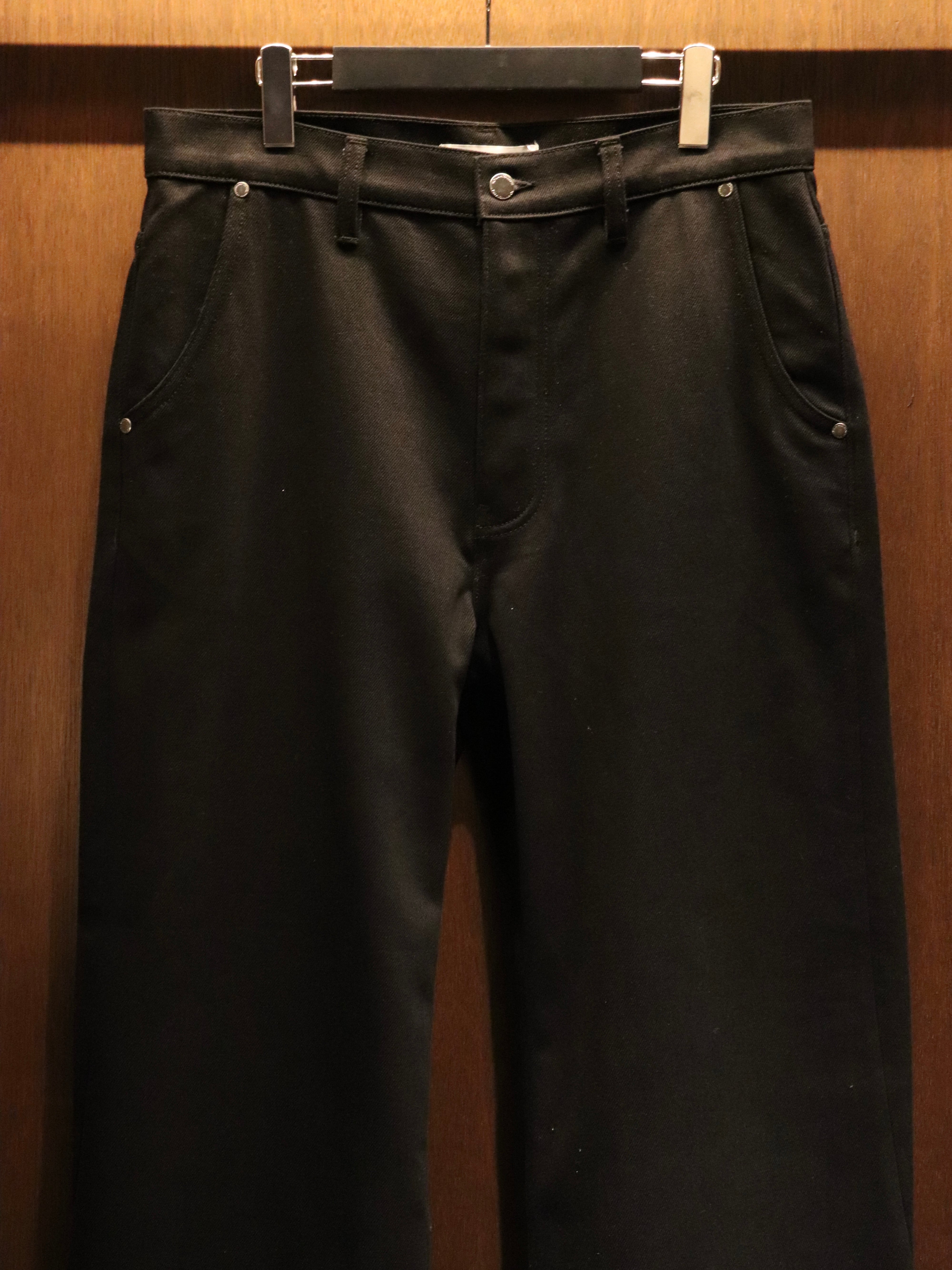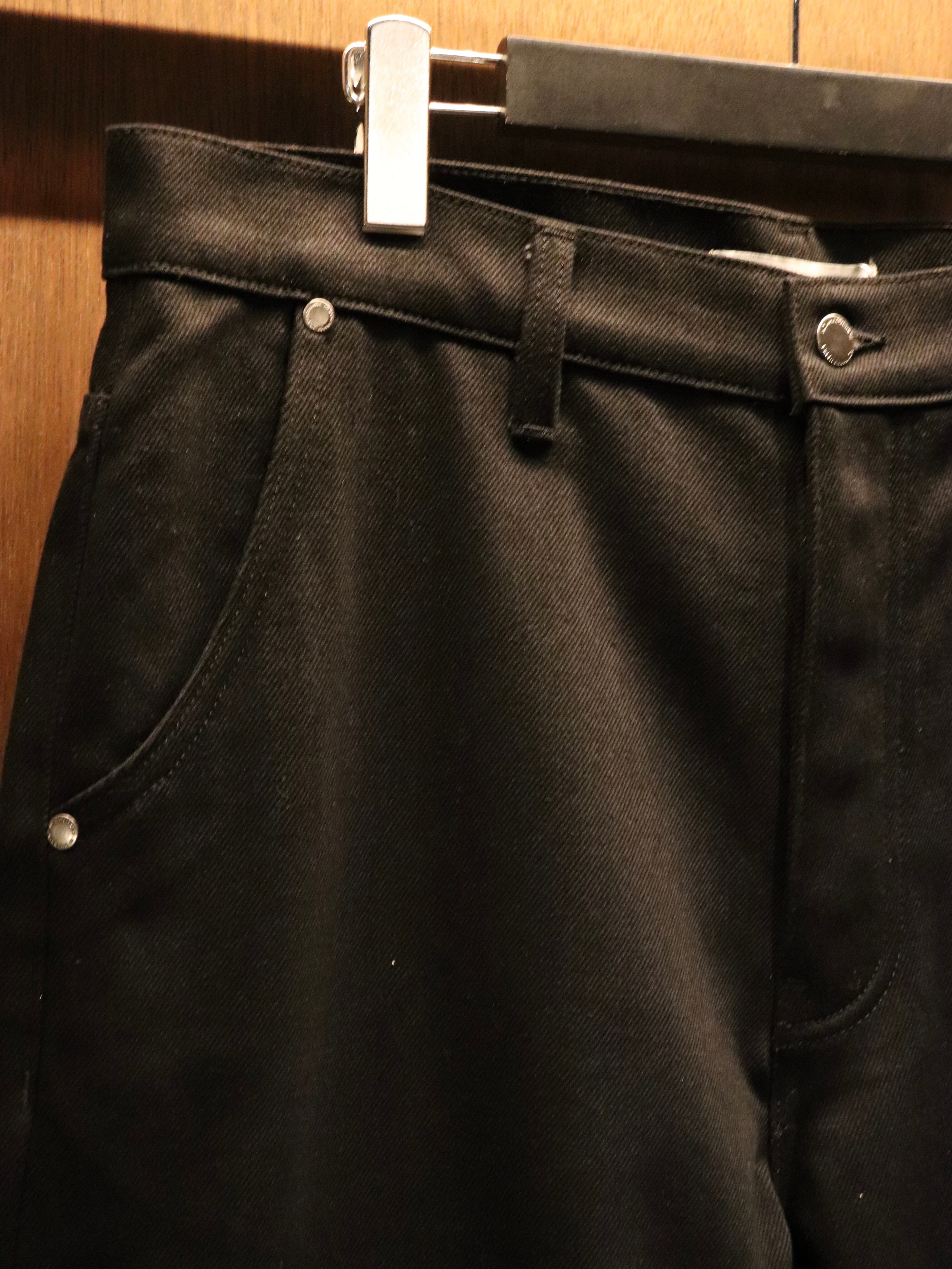 100%オーガニックコットンの14ozデニムを使用し、深みのあるブラックとシャープな風合いが特徴。