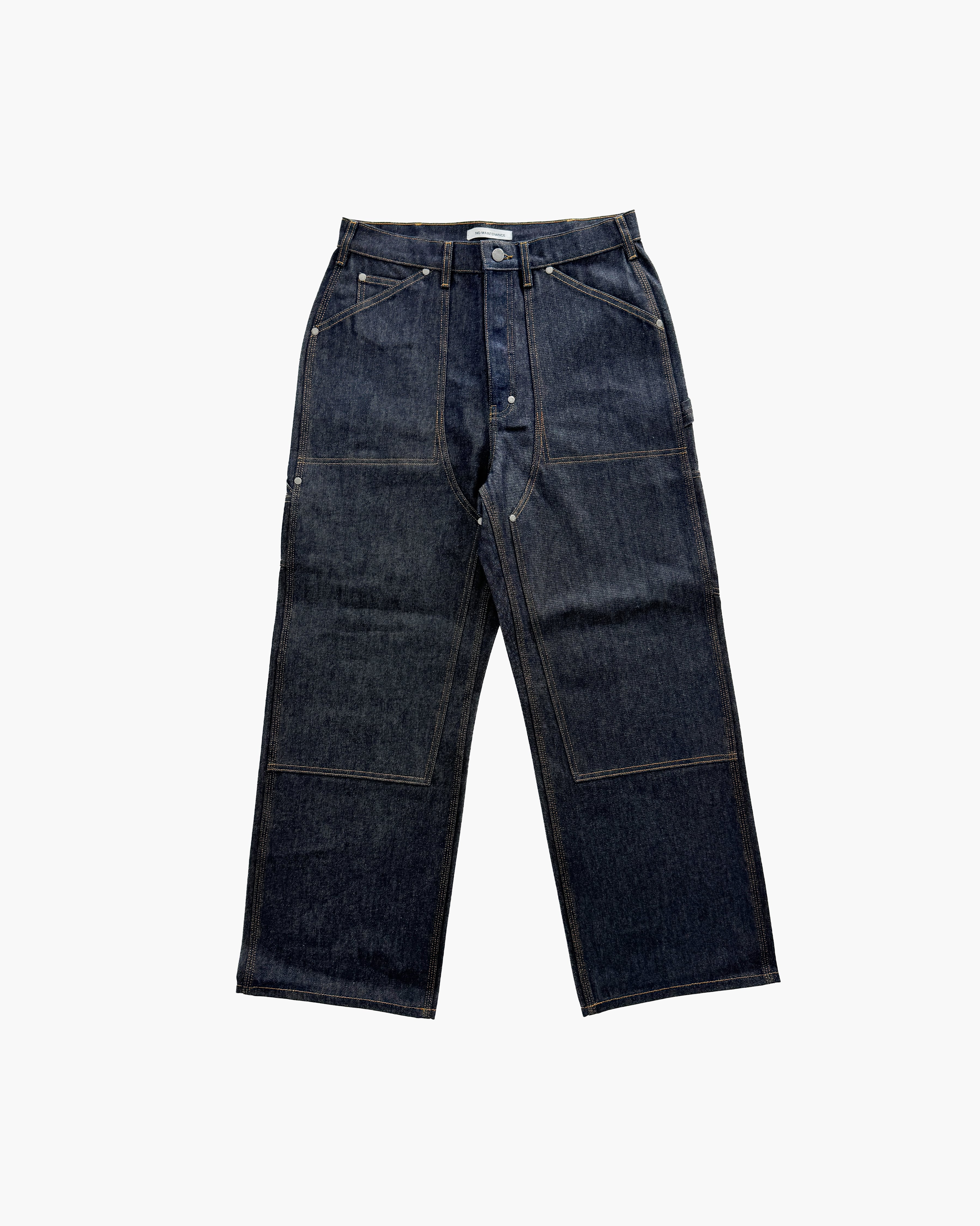 14ozのオーガニックコットンデニムを使用したダブルニーパンツ。