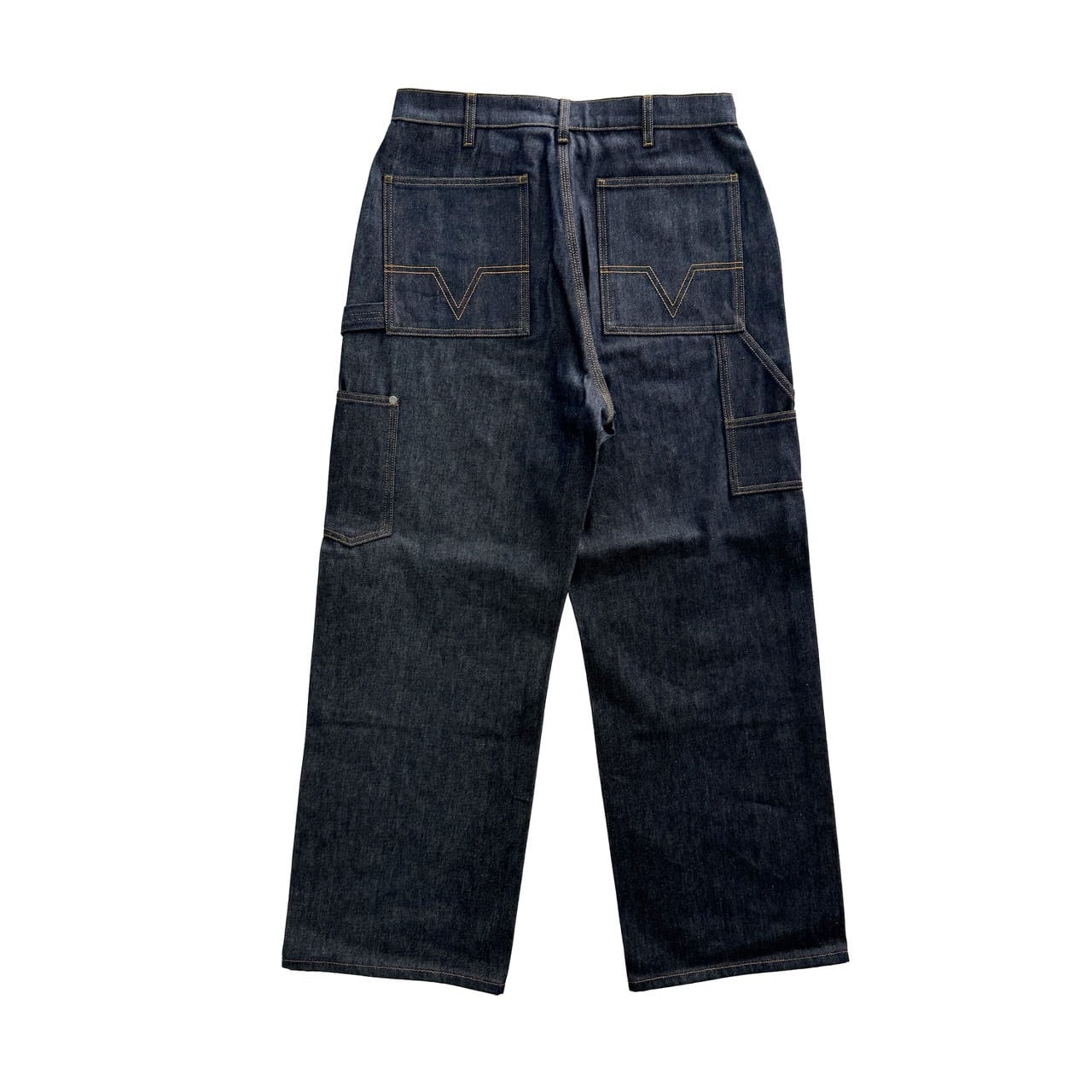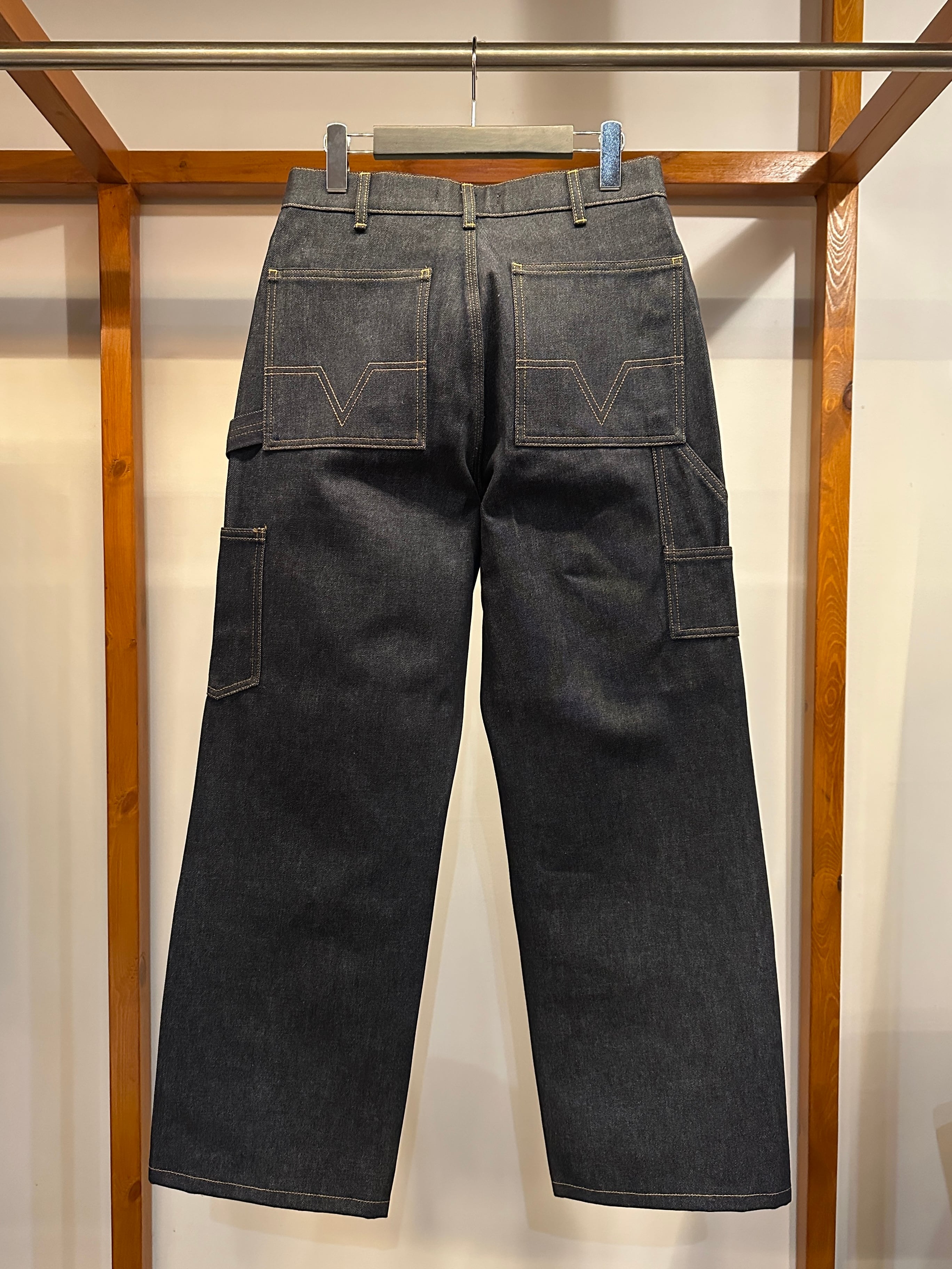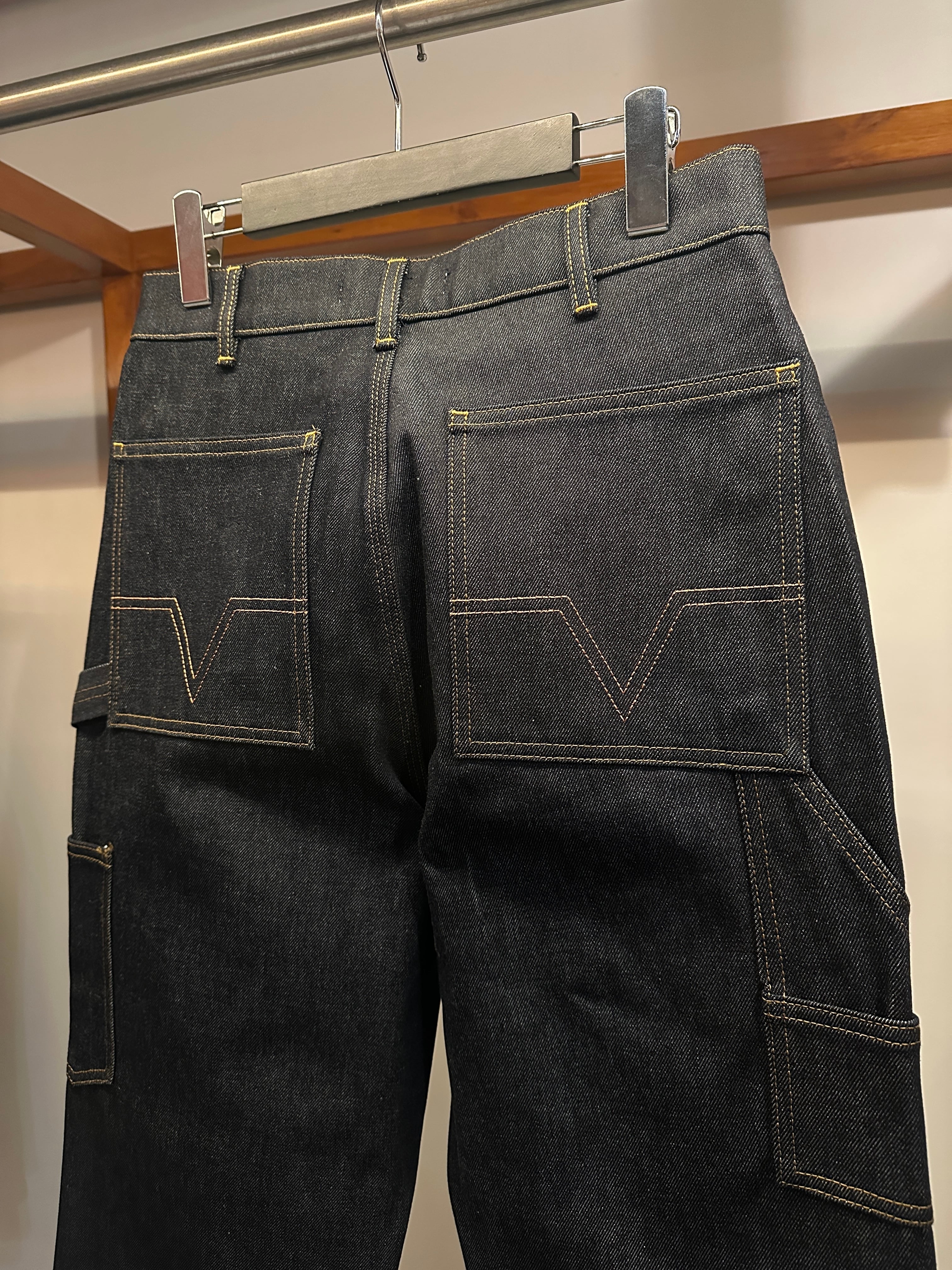クラシックな5ポケットデザイン・ボタンフライに加え、バックポケットにはシグネチャーの幾何学模様のステッチが施されています。