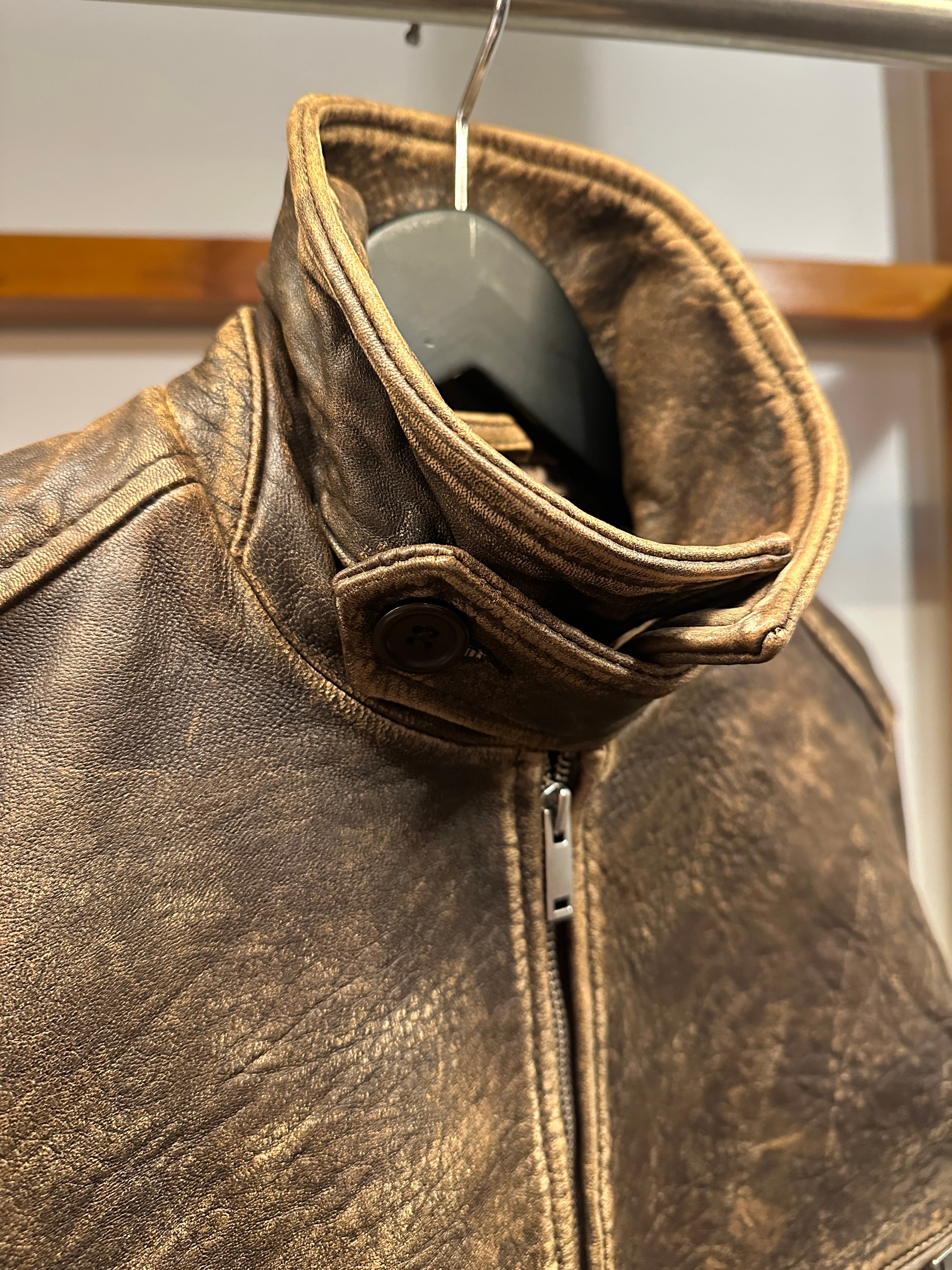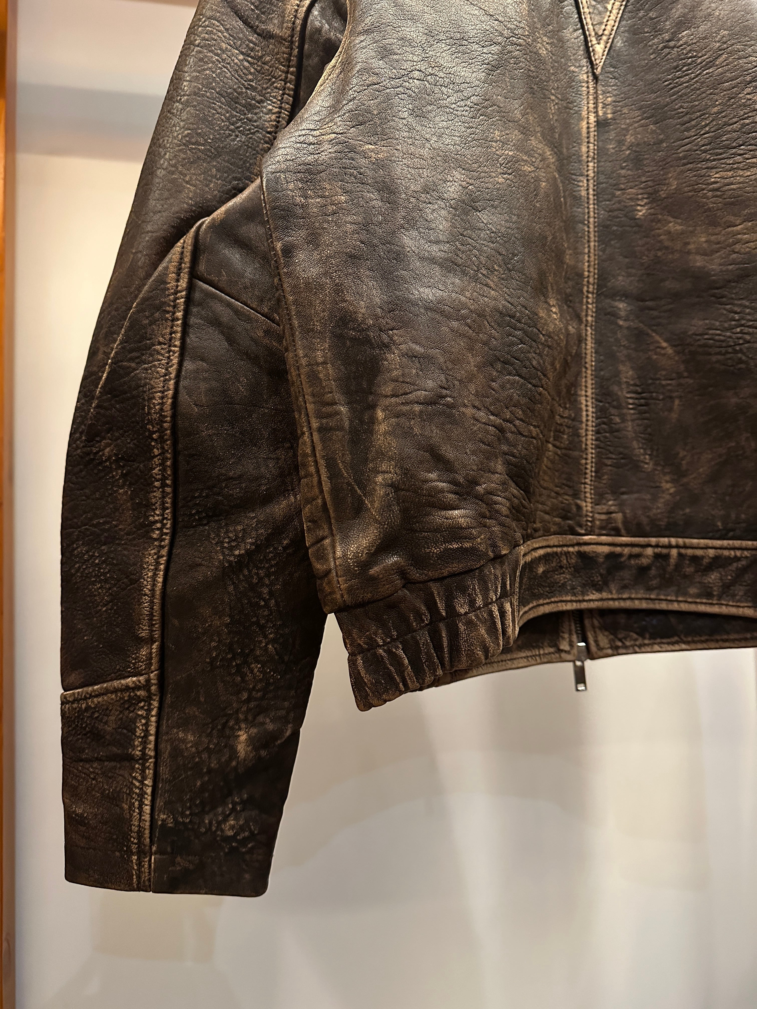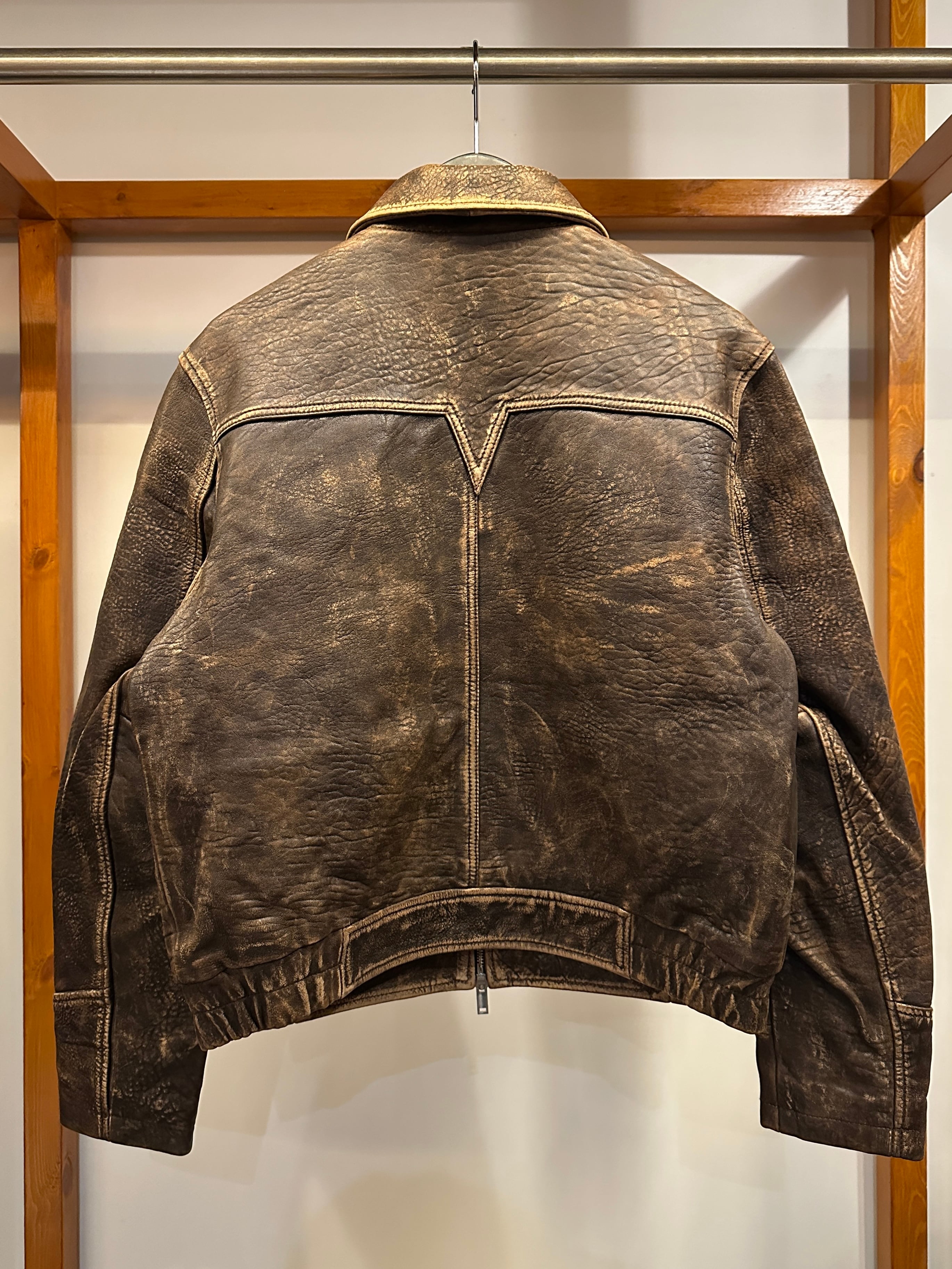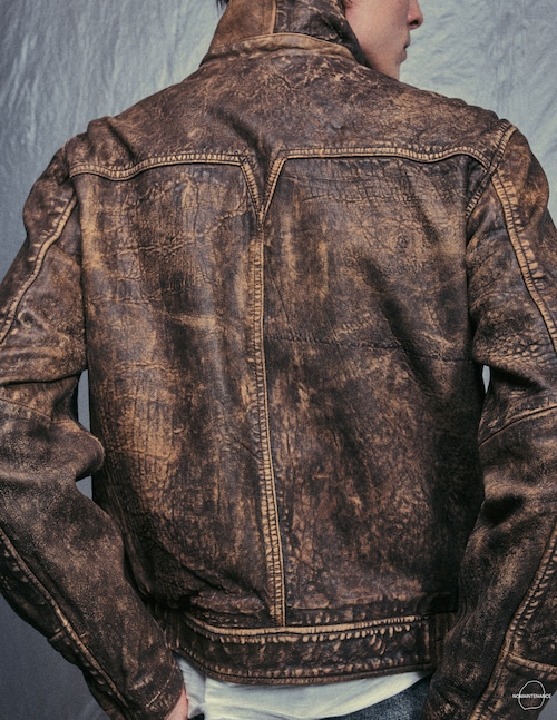 最高級のトップグレインのラムスキンを使用し、エイジング感を加えた独特の雰囲気が特徴のレザージャケット。