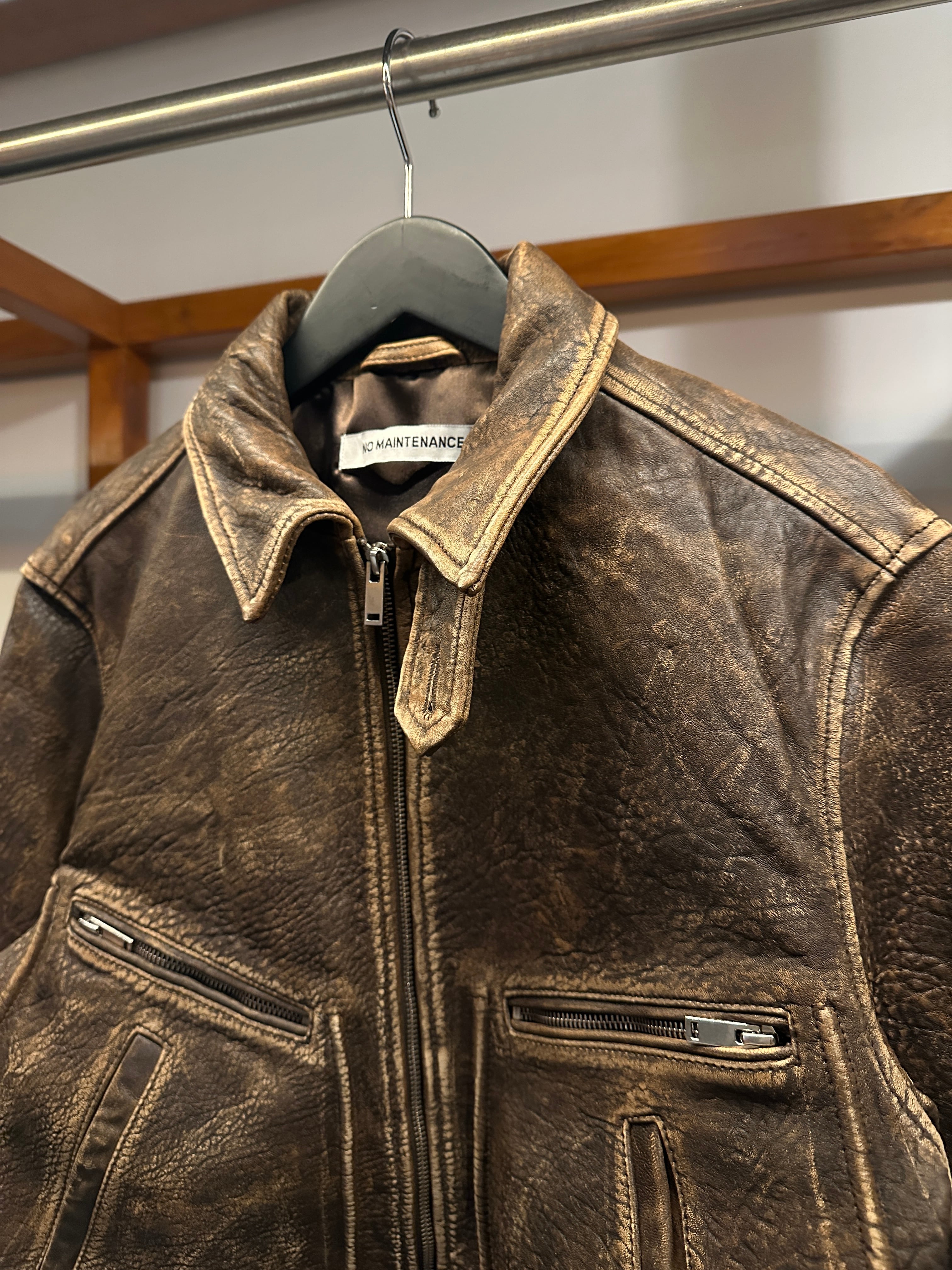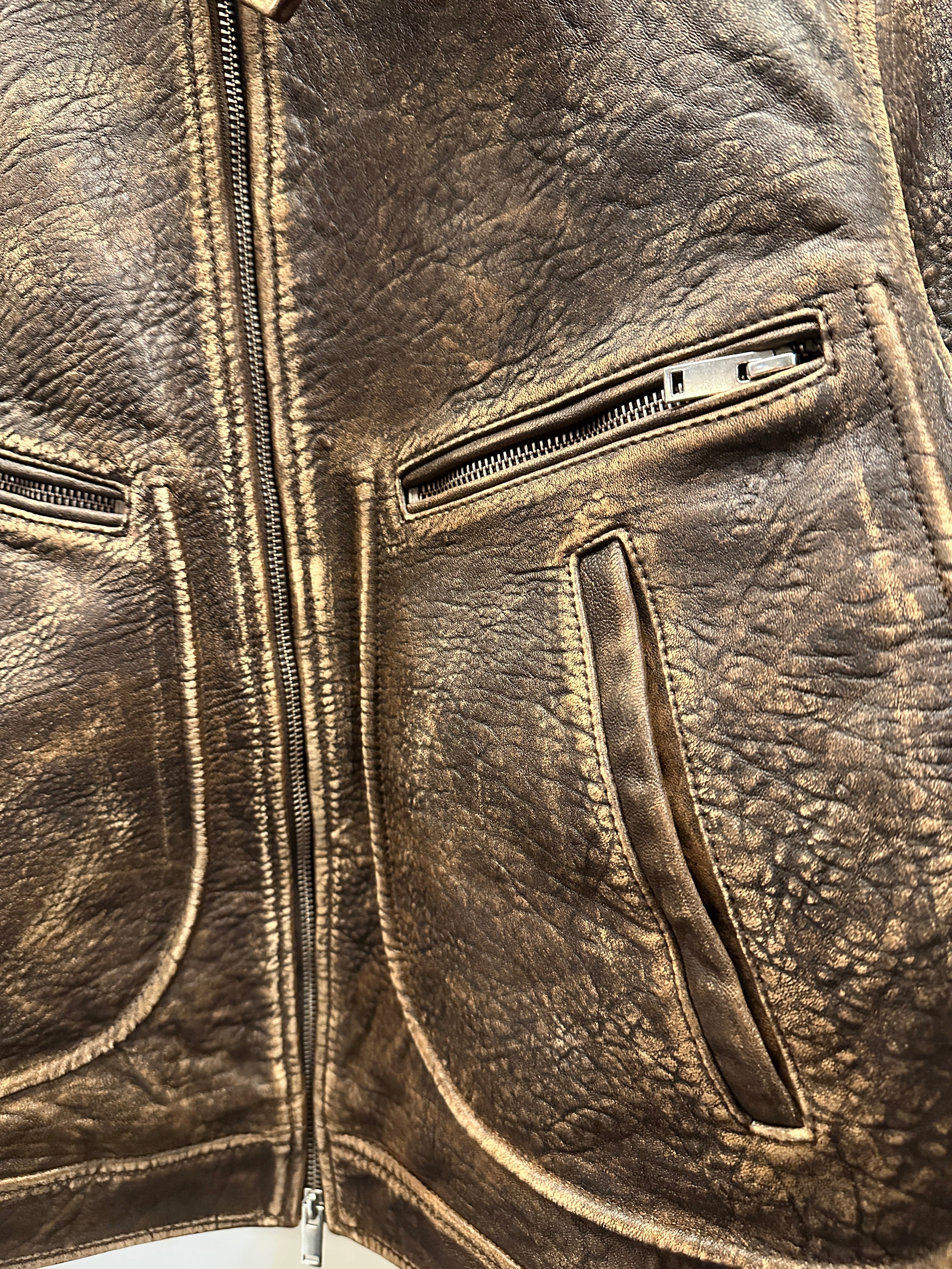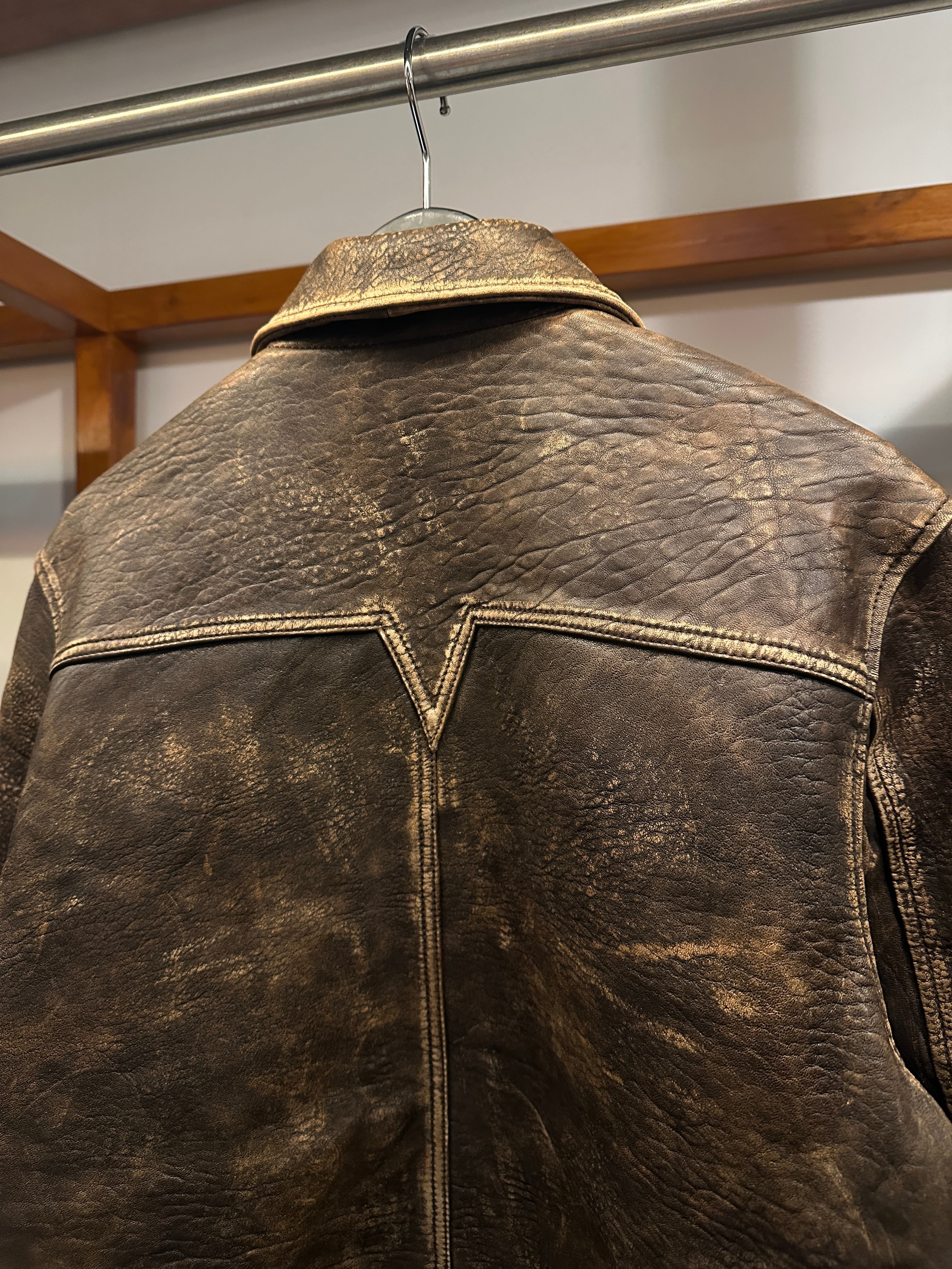最高級のトップグレインのラムスキンを使用し、エイジング感を加えた独特の雰囲気が特徴のレザージャケット。