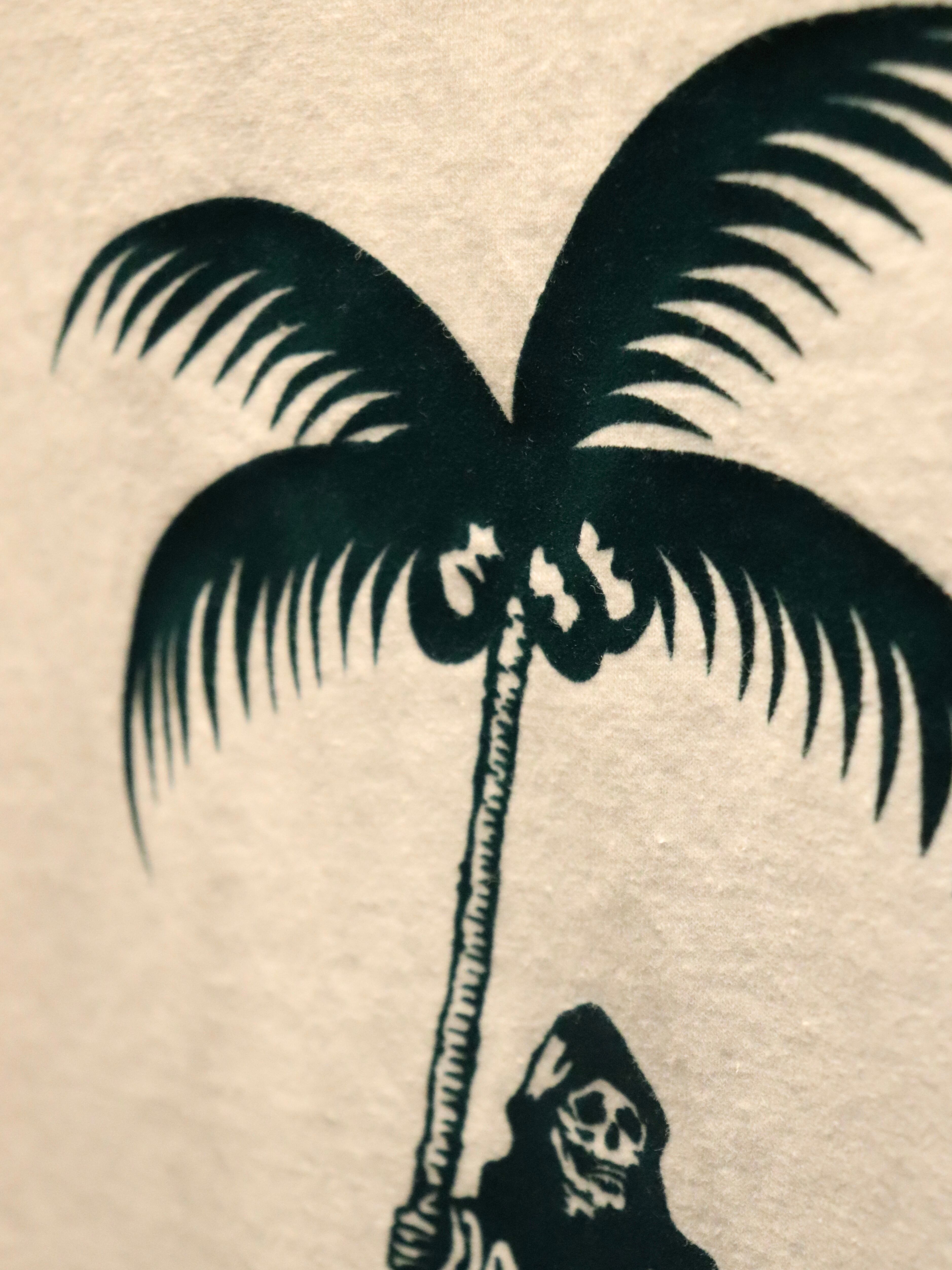 フロントには、鎌の代わりにヤシの木を持った死神のフロッキープリント。